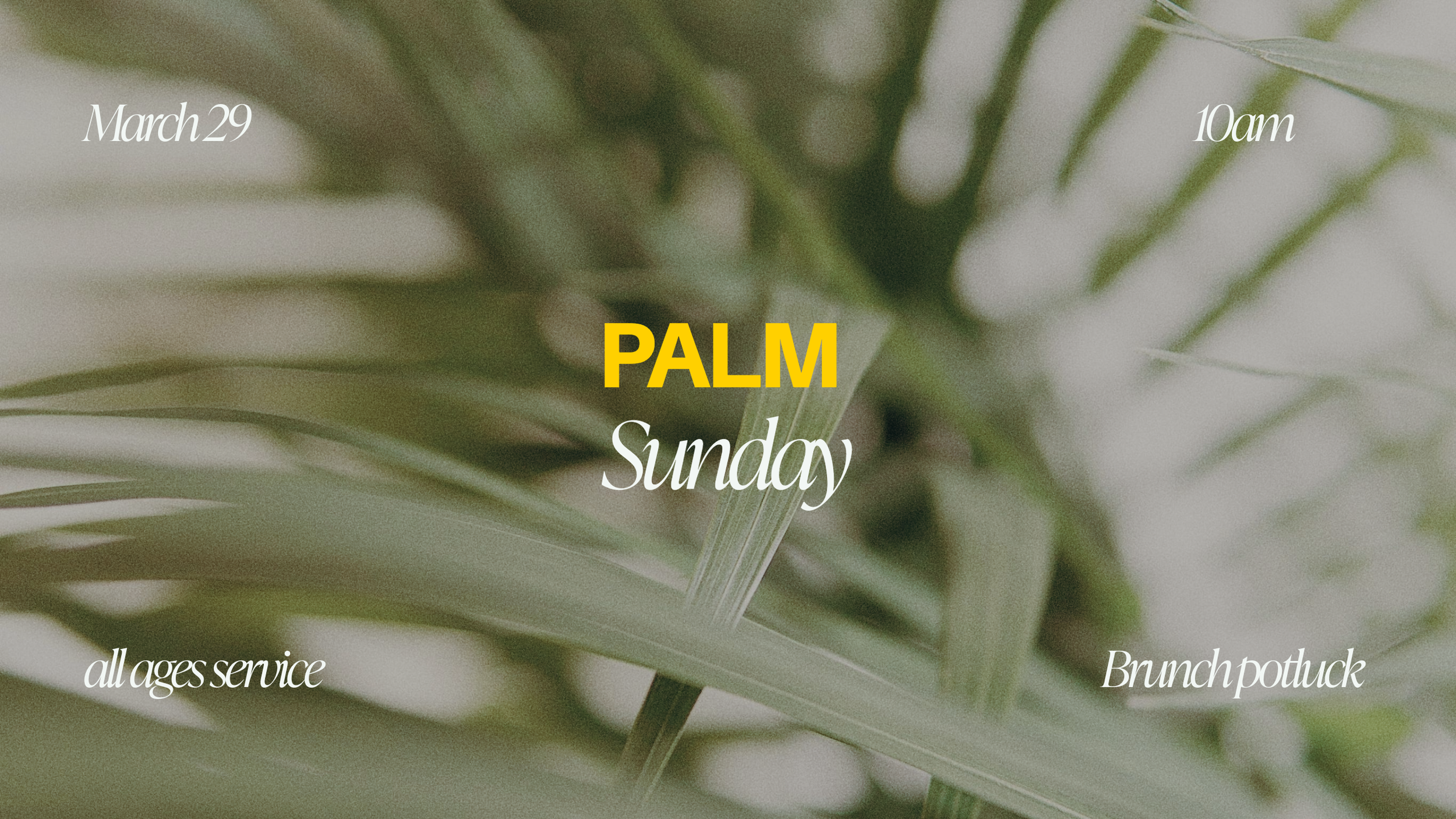 PALM SUNDAYAn all-ages service commemorating Jesus’s triumphal entry into Jerusalem and marking the start of Holy Week. We'll have a potluck brunch and activities for the kids. Join us as we celebrate the fulfilled prophecy of Jesus.