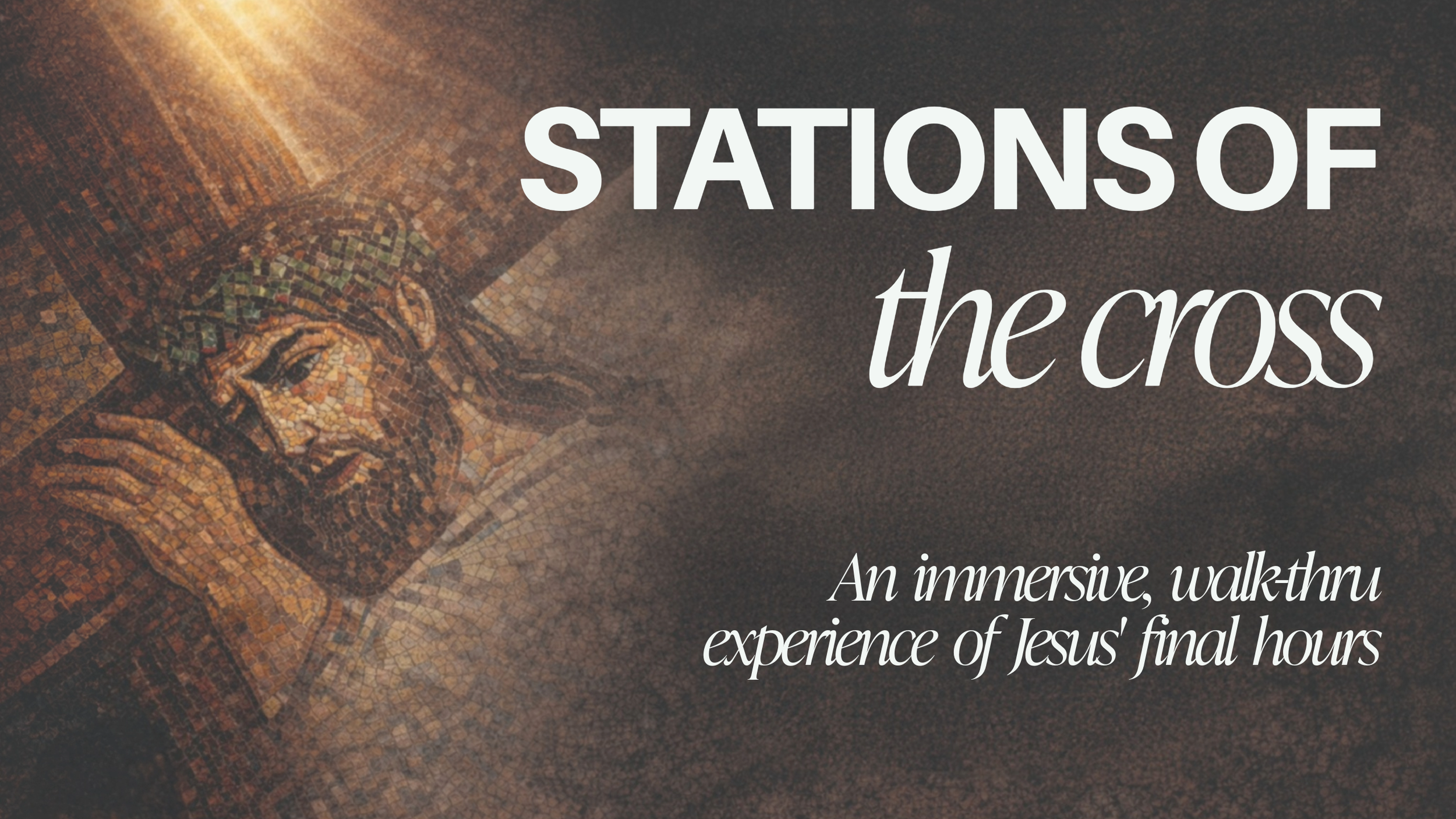 Stations of the Cross is an immersive gallery-style experience. Walk through the power visual scenes that tell the story of Jesus’ final hours. This self-guided tour lasts 22 minutes and requires your own smartphone and headphones.